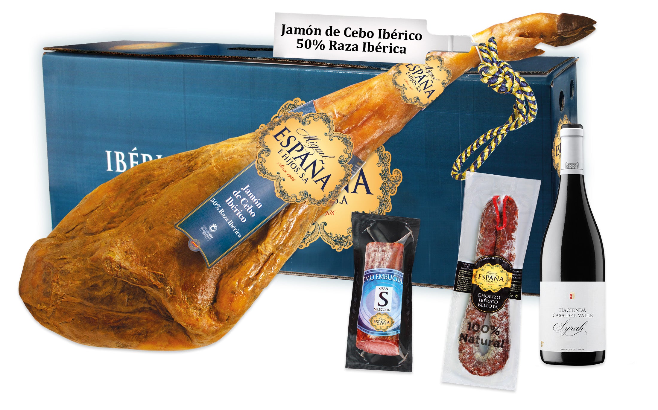 Mini Jamón de Cebo Ibérico 50% Raza Ibérica + Mini Jamonero + Cuchillo