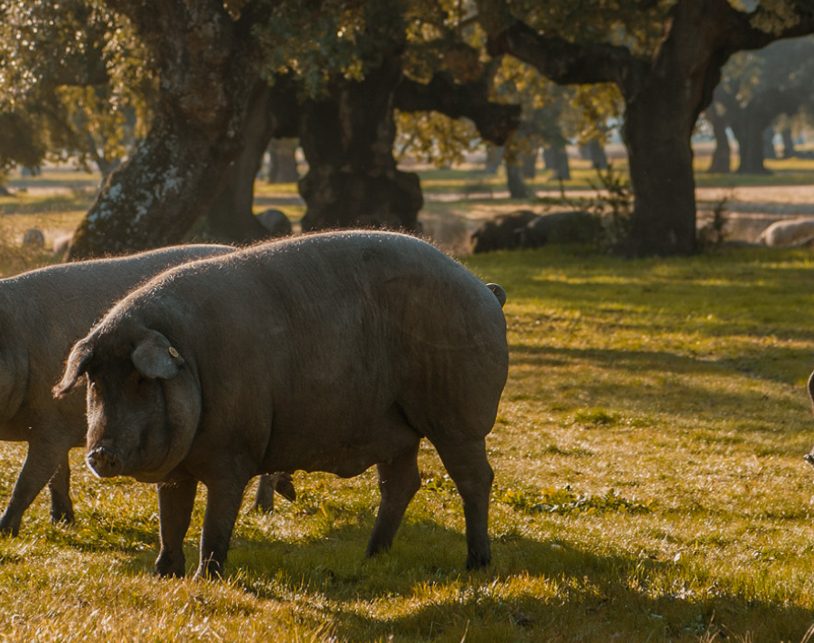 The presence of the Iberian pig in the pastures has a positive impact on local biodiversity. Their foraging behavior, such as turning the soil in search of roots and dispersing seeds through their excrement, contributes to the natural cycle of vegetation regeneration and the maintenance of plant diversity in these ecosystems.