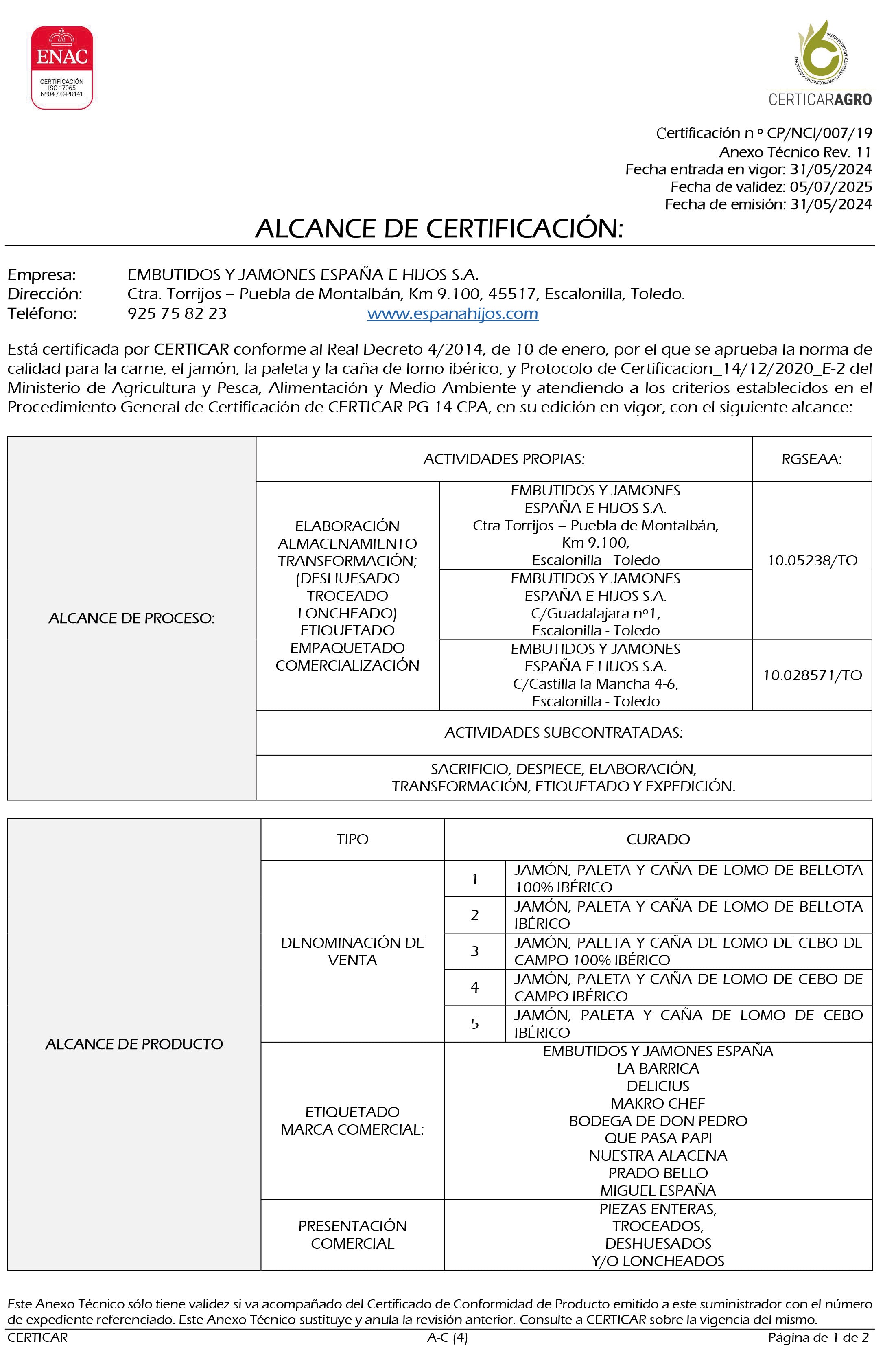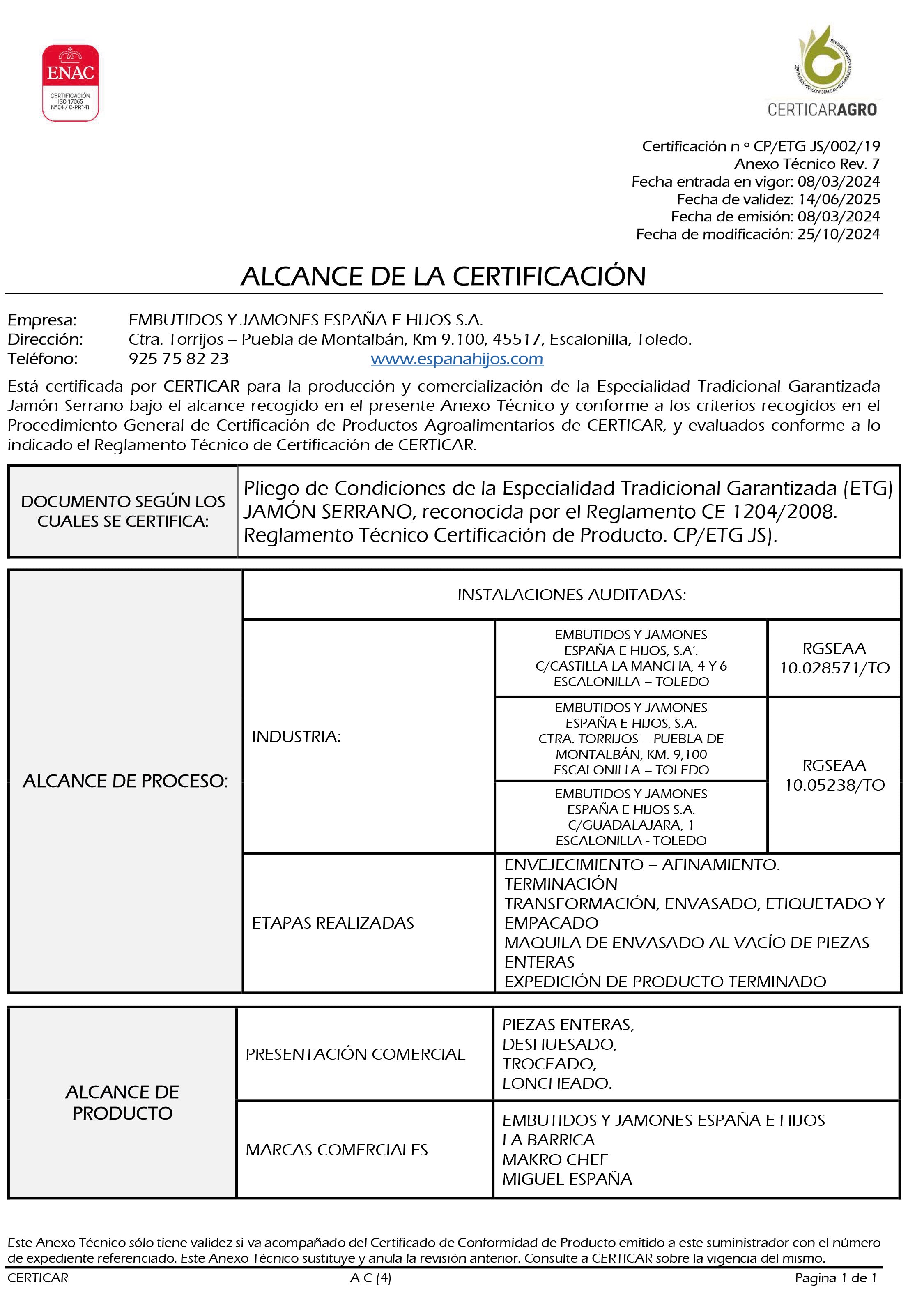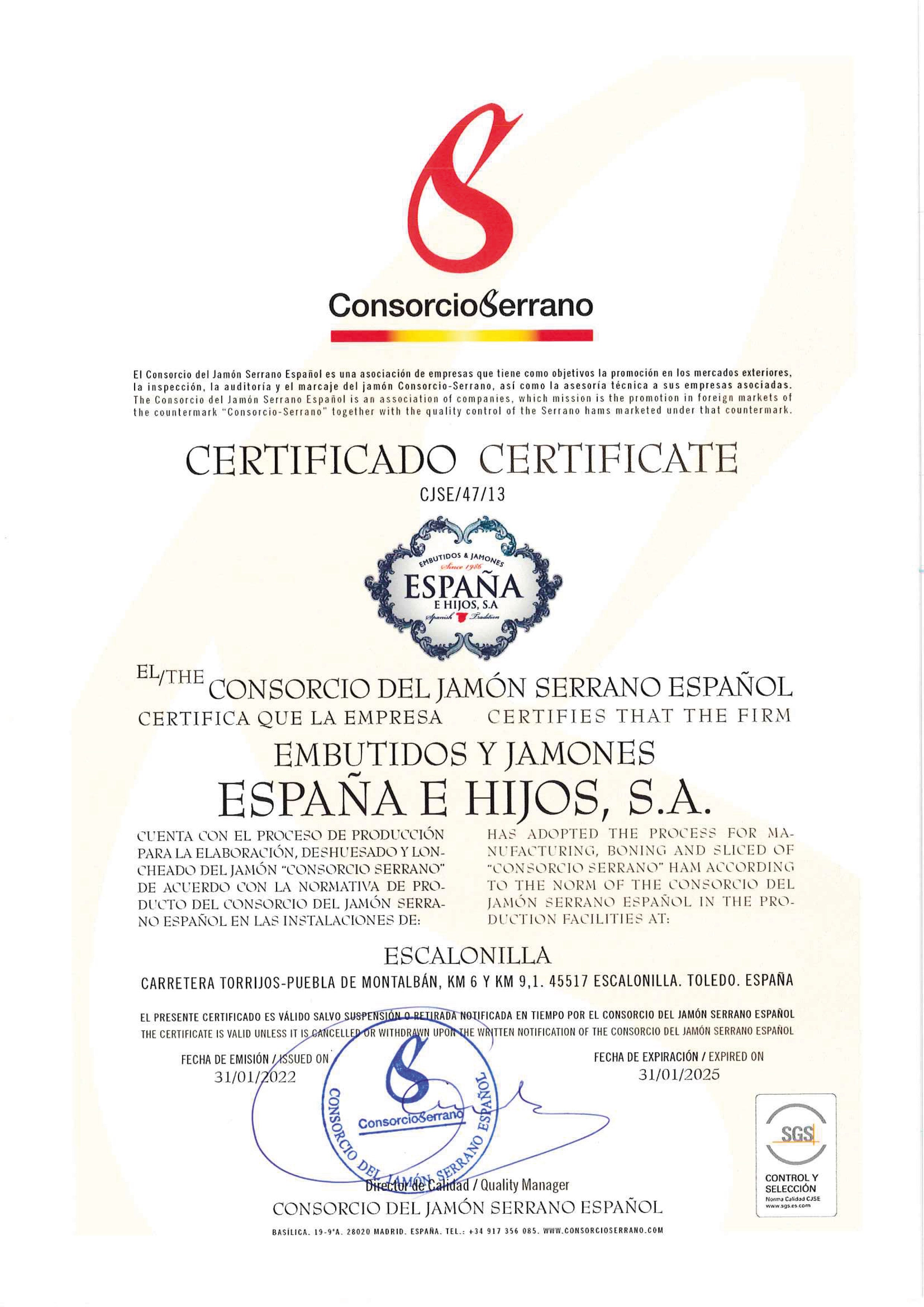Le 12 janvier 2007, l' usine de séchage de jambon de Geridonte a été acquise, agrandissant ainsi le terrain disponible. Plus tard, en raison du besoin de plus d'espace, des entrepôts ont été acquis dans la zone industrielle d'Escalonilla, où les expéditions ont été déplacées . Au total, 8 entrepôts d'une superficie de 4 200 mètres carrés ont été ajoutés et 1 200 mètres carrés supplémentaires ont été achetés et utilisés comme zone de réfrigération et de conditionnement.