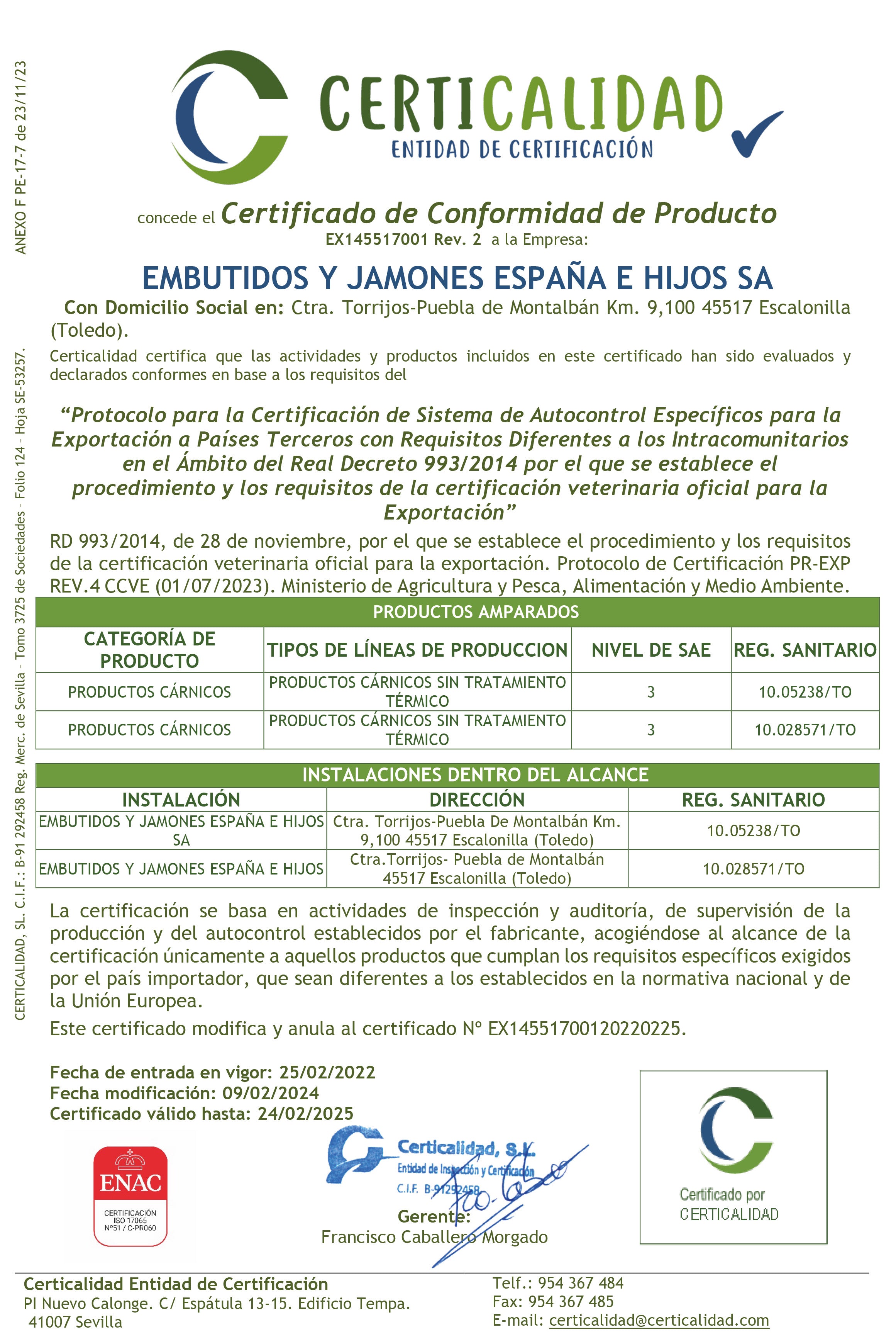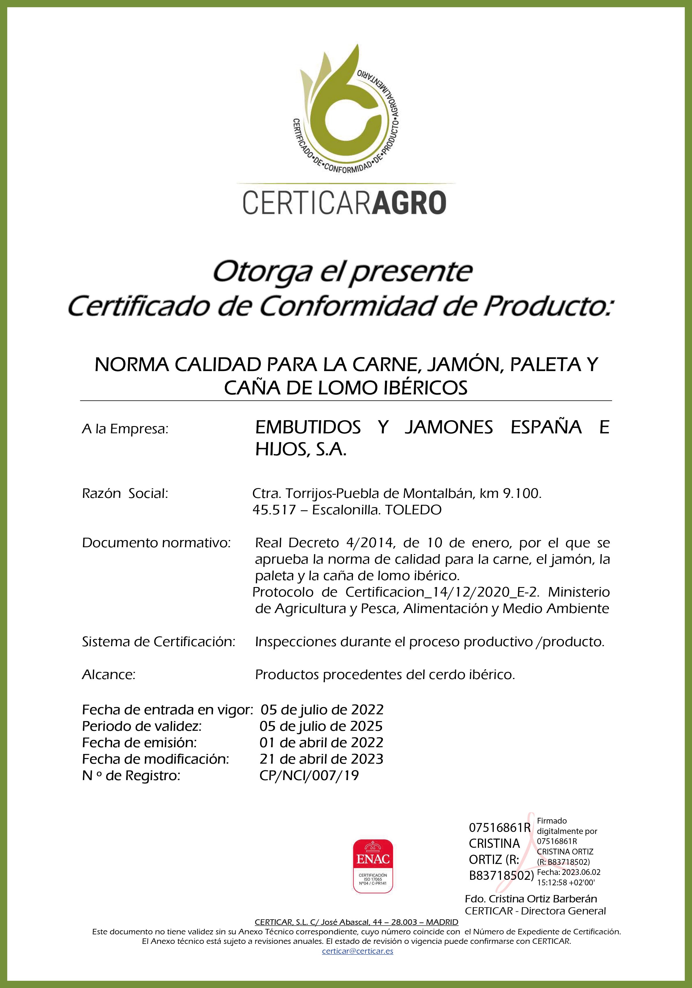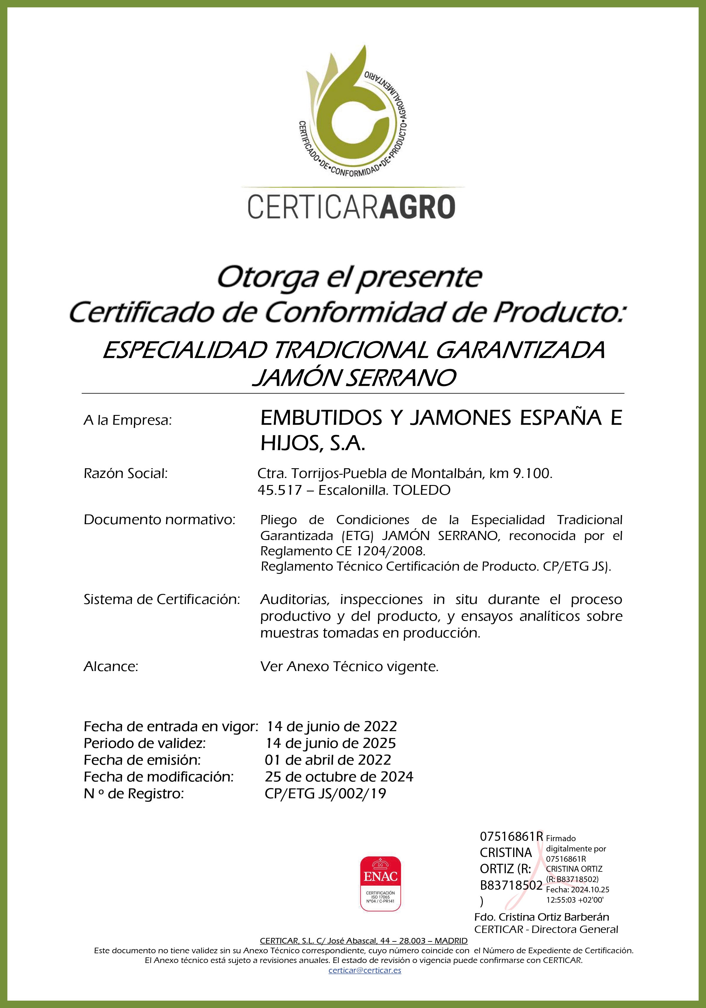Le 12 janvier 2007, l' usine de séchage de jambon de Geridonte a été acquise, agrandissant ainsi le terrain disponible. Plus tard, en raison du besoin de plus d'espace, des entrepôts ont été acquis dans la zone industrielle d'Escalonilla, où les expéditions ont été déplacées . Au total, 8 entrepôts d'une superficie de 4 200 mètres carrés ont été ajoutés et 1 200 mètres carrés supplémentaires ont été achetés et utilisés comme zone de réfrigération et de conditionnement.