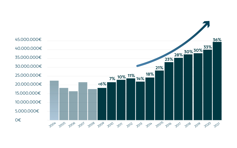 Hasta ahora el equipo de exportación ha conseguido superarse año tras año. Nuestros propósito para los próximos 5 años es convertirlo en un 50%.